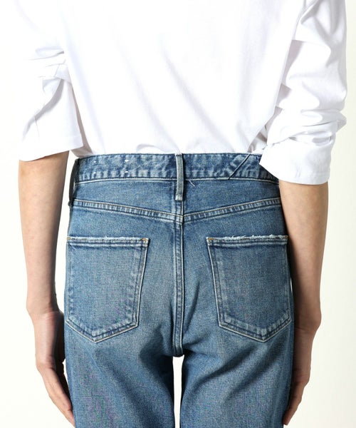 【デザイン】 upper hightsの定番のGIRLFRIEND(SKINNY BOYFRIEND )シルエット「THE STELLA(ザ ステラ)」からハイライズが登場。太すぎないスッキリとしたスタイリッシュなボーイズシルエットが最大の特徴。股上が4㎝長くなっただけなので、通常STELLAと同じサイズ感。9分丈設定にしているため、お直しせずにジャストレングスで裾の加工感も楽しめます。