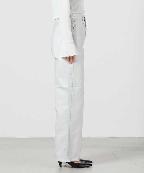 【デザイン】upper hights(アッパーハイツ)のデニムパンツ。「THE NIECE(ザ ニース)」は、ハイライズ仕様でウエスト周りをすっきりとデザイン。膝から裾にかけてワイドなストレートシルエットが特徴です。裾に向かってまっすぐなラインを作ることで、足長効果を引き出し、スタイルアップが期待できます。ディテールにこだわり、シンプルながら洗練されたデザイン。カジュアルにもきれいめにも合わせやすい万能アイテムです。