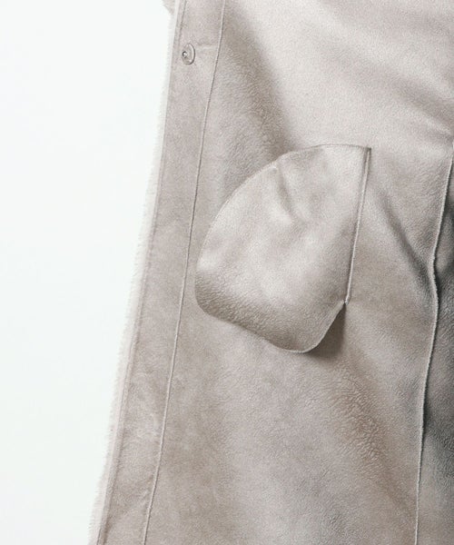 【デザイン】VALENTINI(ヴァレンティーニ)のエコファーコート。 裏地はフェイクスエードのダブルフェイス仕様にして温かみをプラス。下に着るものを選ばず、こなれ感と着心地の良さを演出してくれる美シルエットがポイント。シンプルで合わせるものを選ばないからデイリーユースに大活躍してくれそう。