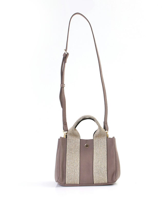 【デザイン】 定番人気のフェイクスエードのミニショルダーバッグ。ハンドルはゴールドラメテープを使用しており、カジュアルな中に上品さを感じるアイテム。中底が入っているので型崩れも防いでくれ、丈夫でデイリー使いに最適。コンパクトなサイズながらも、マチがしっかりとあるので、身の回りのものは十分入れて頂くことが出来ます。 取り外しのできるストラップ付きなので、シーンに合わせてお使いいただけます。