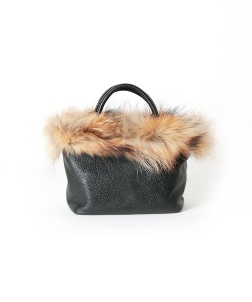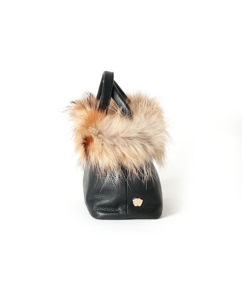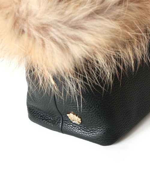 【デザイン】 VIOLAd'ORO(ヴィオラドーロ)のバッグ。トップ部分にラクーンファーをあしらった華やかなアイテム。シボ感のあるレザーと、ボリュームのあるふわふわのファーが上品な雰囲気を漂わせます。取り外し可能なショルダーストラップ付きで、2WAY仕様が可能。シンプルなフォルムなのでデイリー使いもしやすく、カジュアルからキレイめスタイルまで、幅広いコーディネートで活躍してくれるバッグです。