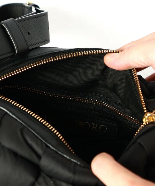 【デザイン】VIOLA’dORO(ヴィオラドーロ)のELMOナイロンボンディングメッシュバッグ。ナイロンメッシュシリーズ。カジュアルなナイロン素材をふんわりとしたメッシュに仕立て、軽やかで抜け感のあるデザインに仕上げています。長めのショルダーストラップがポイントとなり、肩掛けや斜め掛けで使える2WAY仕様。長財布やポーチなどの必需品がすっきりと収まる収納力を備え、デイリーユースに最適です。内側にはファスナー付きポケットがあり、小物も整理しやすく実用性も◎。カジュアルなスタイルはもちろん、きれいめなコーディネートに外しアイテムとして取り入れるのもおすすめです。
