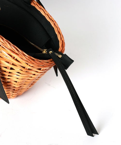 【デザイン】VIOLAd'ORO(ヴィオラドーロ)のラタン×ファーカゴバッグ。強度を高める艶加工を施したラタンをベースに、牛床革のレザーパーツを組み合わせた上品な仕上がりです。舟形のフォルムは荷物をすっきり収めやすく、長財布やポーチ、スマートフォンなどお出かけに必要なアイテムがしっかり入るサイズ感です。間口にはスナップボタンで着脱可能なフォックスファーをあしらい、取り外すことでシーズンレスに使用可能。2本のレザーハンドルは長さ調整ができ、肩掛けにも手持ちにも対応します。開口部は安心のジップ仕様で、内側にはオープンポケットとジップポケットを備え、小物の仕分けにも便利。カジュアルからきれいめまで幅広いコーディネートに馴染み、華やかさと実用性を兼ね備えたアイテムです。