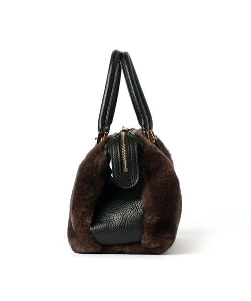 【素材】外側のボア部分はふんわりとした肌ざわりで、触れた瞬間に温もりを感じられる柔らかさ。見た目にも暖かく、秋冬コーディネートにぴったりの素材感です。反対面は滑らかで光沢のあるスムースレザー調素材で、上品さときちんと感をプラス。Wフェイス仕様により、見る角度やスタイリングによって異なる表情を楽しめます。ショルダーやハンドル部分に使用されたイタリアンレザーは、丈夫でしなやか。使い込むほどに風合いが増し、長くご愛用いただけます。