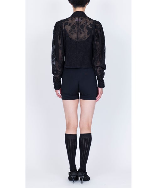 【デザイン】 VIVIANO(ヴィヴィアーノ)のブラウス。繊細なフラワーモチーフが浮かび上がるシアー素材を使用した、クラシカルなアイテム。フロントにはくるみボタンを連ね、端正で上品な印象に仕上げています。程よく立ち上がるハイネックと、ボリュームを持たせたスリーブが女性らしいシルエットを演出。透け感のある軽やかな表情が、スタイリングに抜け感と奥行きをもたらします。一枚ではもちろん、インナーとのレイヤードによって表情の変化も楽しめるアイテムです。