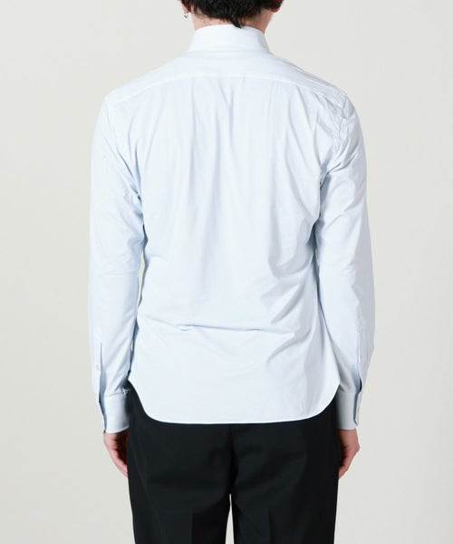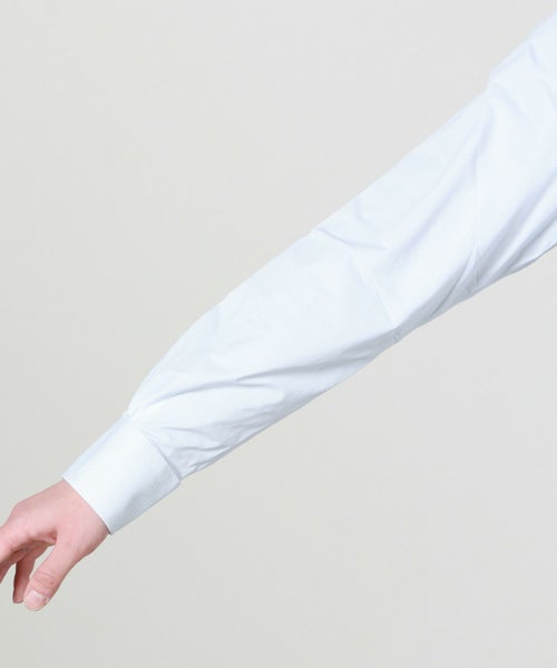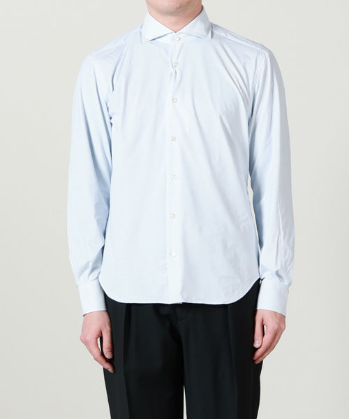 【デザイン】 XACUS(ザッカス)のドレスシャツ。端正な顔付きのドレスシャツですが、生地に最大の特徴があり、非常に伸縮性の高い縦横に伸びる素材で作られているので、クールビズにも取り入れやすい現代的な仕様になっております。シルエットはスリムフィットでビジネスをはじめとしたあらゆるシーンで着まわせるアイテムです。