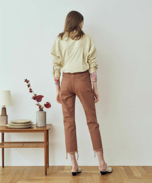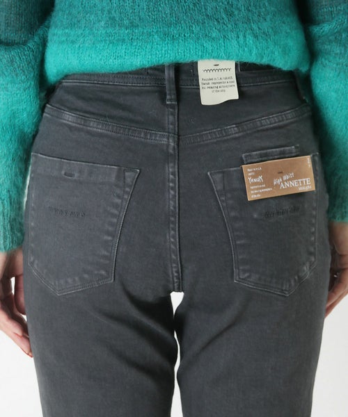 【シルエット】ウエストからヒップにかけて身体に沿い、太ももから下はゆとりをもたせたストレートのANNETTE。裾に向かって少し細くしており、女性らしいストレートシルエットに仕上げています。通常のANNETTEより2.5cm股上が深いハイウエスト仕様で、トップスインの着こなしも様になります。