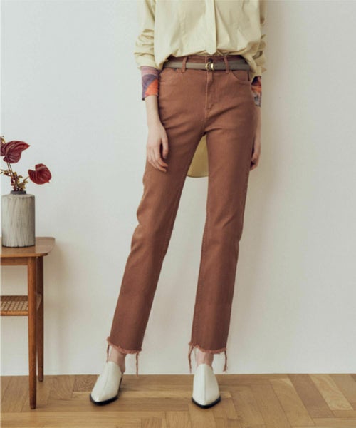 【スタッフ chi.】 身長:162cm/体型:ウェーブ/年齢:20代/普段サイズ:XS/着用サイズ:22インチ サイズ感:腰回りは程よくフィットし、ストレートでも女性らしい印象に。 おすすめポイント:いつものデニムスタイルをアップデートしてくれる秋色のニューカラーが登場♡ 美脚効果抜群のストレートシルエットで、ウエスト位置が高く、脚長効果もございます!