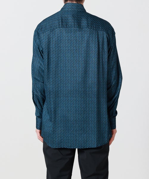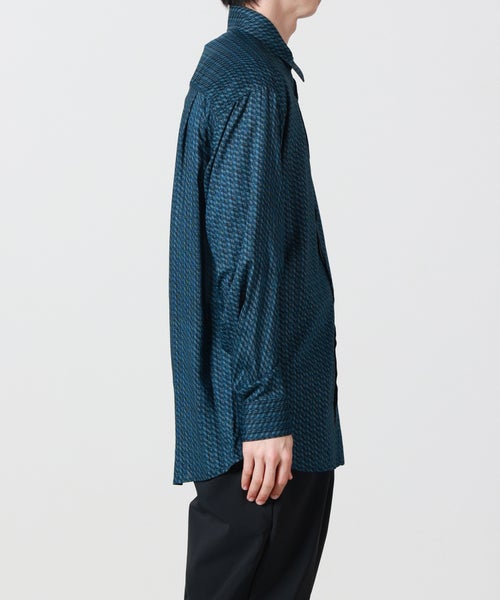 【デザイン】YOKE(ヨーク)のシャツ。70年代のヴィンテージの柄をプリントしたシャツです。後ろ身頃にヨークがなくタックが衿ぐりまで流し込まれているのが特徴で、ヨークでとる背中の丸みの立体感はダーツで補われています。シーズンレスにご愛用いただけるアイテムに仕上がっています。