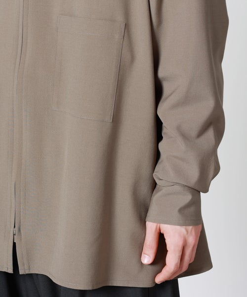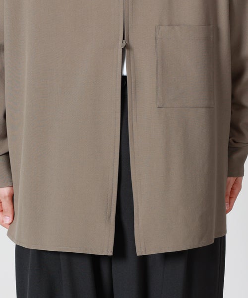 【デザイン】 YOKE(ヨーク)のシャツ。小ぶりなダブルコイルファスナーが特徴的なジップシャツです。さらっとしたウールトロピカル生地で、程良くワイドフィットなため、アウター感覚でバサっと羽織って頂けるアイテムです。同素材のジャケット(品番:YK26SS01171J)やパンツ(品番:YK26SS01173P)とセットアップでの着用もオススメ。 染め上がり後にワッシャータンブラー加工を施すことで、ナチュラルな凹凸感やシワ感がプラスされ肌馴染みが良く、インナーにも羽織にも着用しやすいアイテムに仕上がっております。