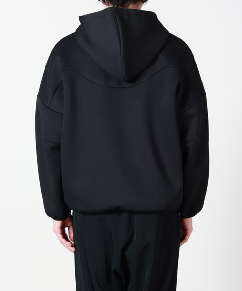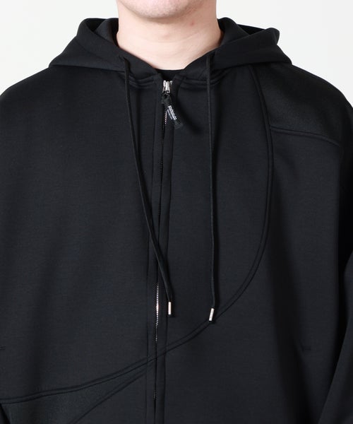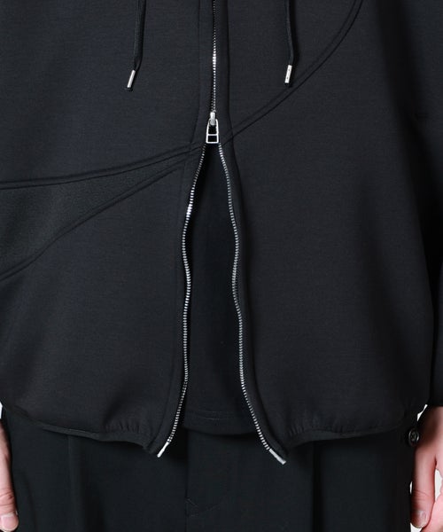 【デザイン】yoshio kubo(ヨシオクボ)のジップパーカー。随所に異素材を流動形に切り替えたデザインが目を引く一着。袖口と裾部分にはリブ編みを採用し、ゆとりのあるシルエットでありながら、洗練された印象を与えます。ダブルジップを採用することで、その日の気分やコーディネートに合わせた着こなしが叶います。