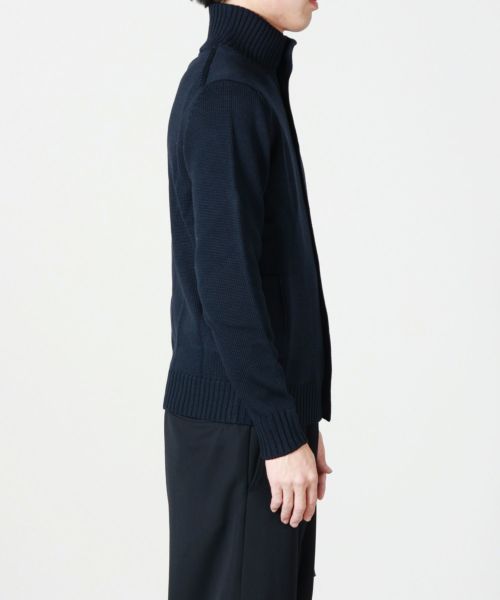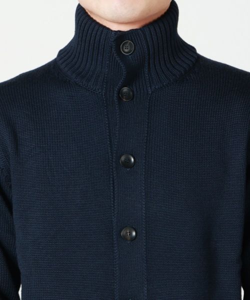 【デザイン】ZANOE(ザノーネ)のニットカーディガン。ブランドを代表する定番の5ゲージのスタンドカラーカーディガンCHIOTO(キョート) は、身幅・肩幅、腕周りはタイト、着丈もやや短めに設定されたスマートなシルエットが特徴です。また綺麗に立ちあがるスタンドカラーが大人のクリーンな印象を引き立ててくれます。