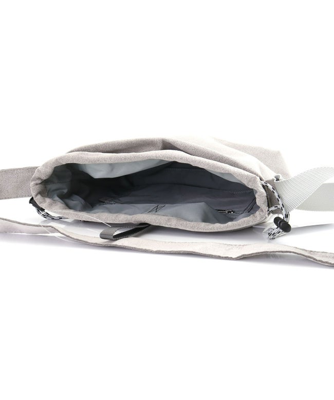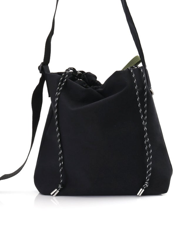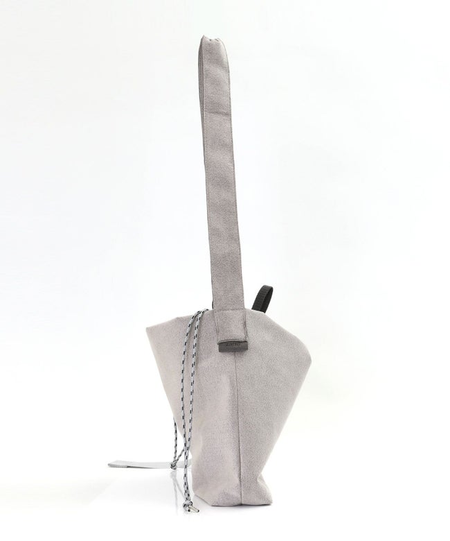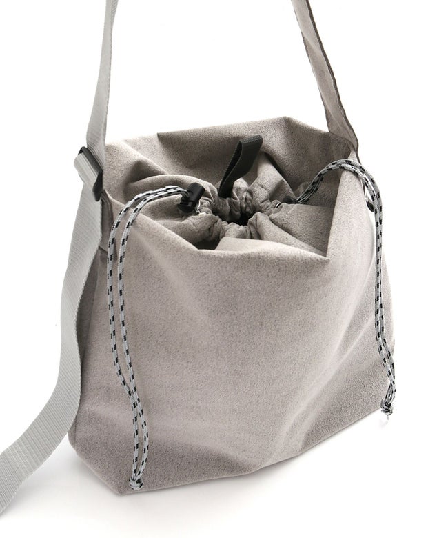 【デザイン】 ブランド定番のマイクロファイバースエード素材を使用した2wayショルダーバッグ。巾着のように開口部を紐で開閉でき。ショルダー部分は伸縮が可能なので斜めかけにしていただくこともできます。カジュアルながらも上品な雰囲気のあるアイテムです。