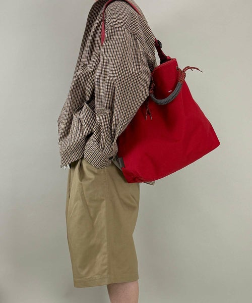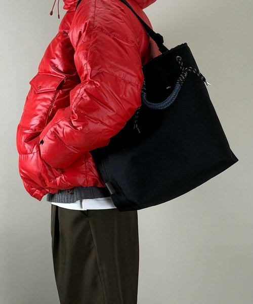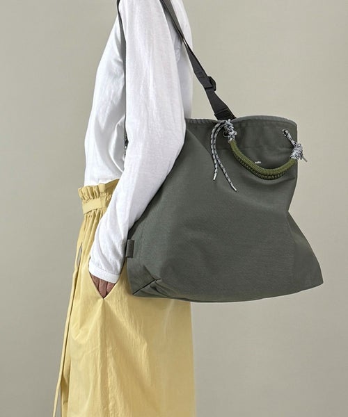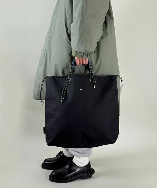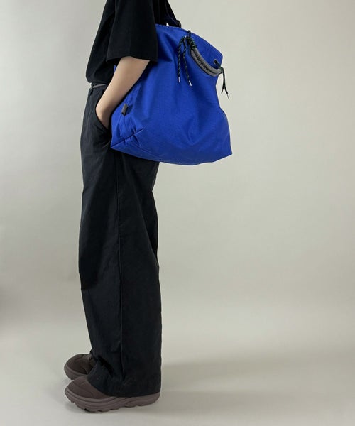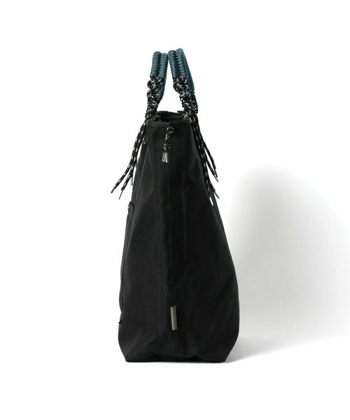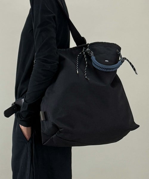 【デザイン】zattu(ザッツ)のバッグ。 コーデュラナイロンを使用したシンプルで軽量なトートバッグです。コードを編み上げた太目のハンドルがポイント。幅の広いショルダーは荷物の負担を軽減します。