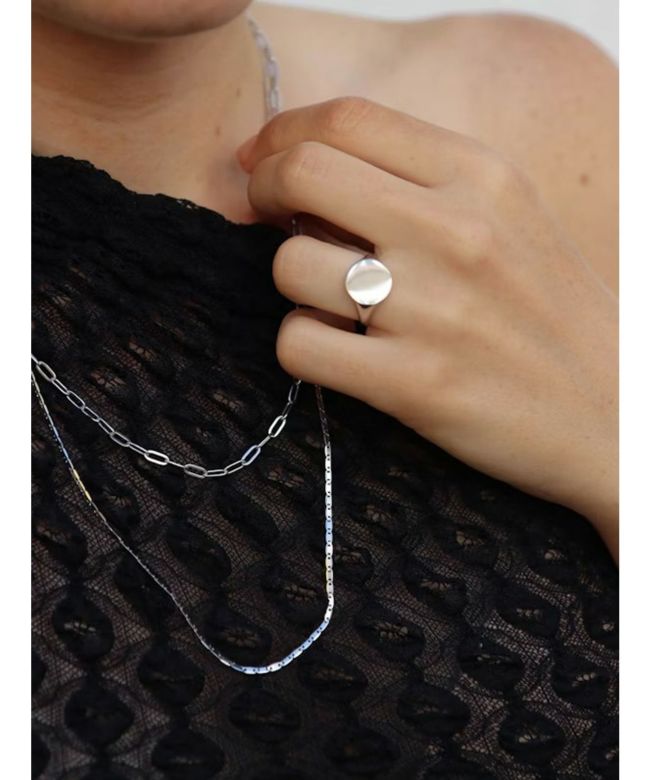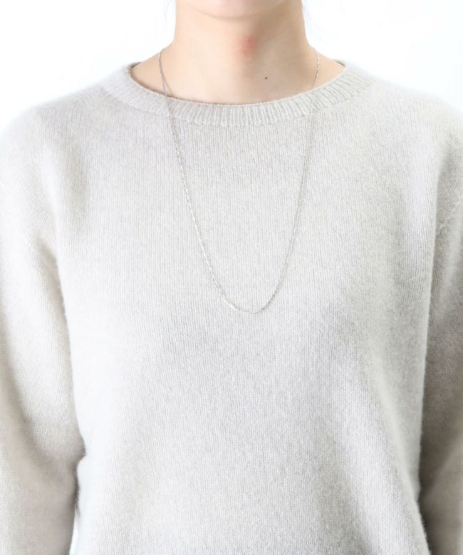 【デザイン】華奢なパーツが洗練された印象を与えるMARIA BLACK(マリアブラック)のシルバーのチェーンネックレス。平らなチェーンパーツが肌に寄り添い、軽い着け心地も魅力。シンプルで長くご愛用いただけるアイテムです。長さの調節可能な金具で、ラリエットの様にも着用いただけます。
