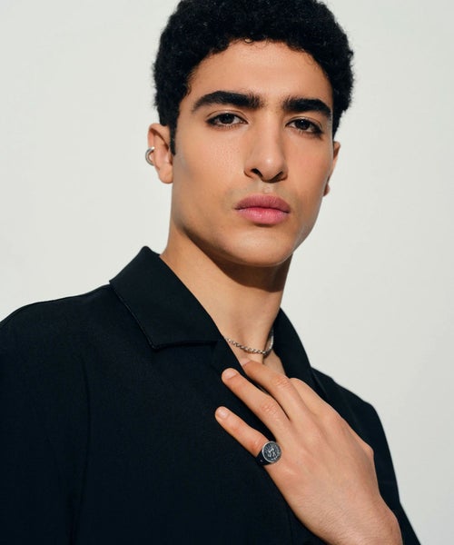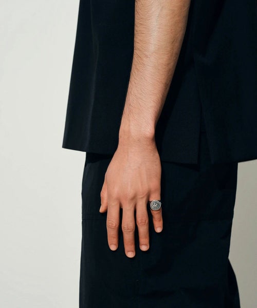 ■シグネットリングなど厚みのあるリングは、一般的にバンドリングなど細めのリングより大きいサイズを選ぶ必要がございます。
