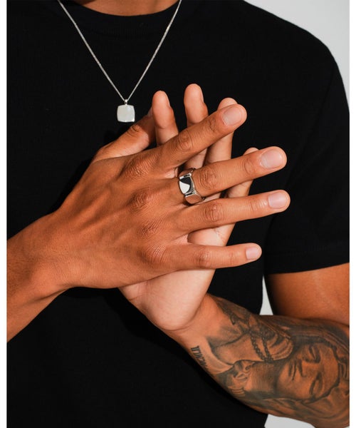 ■シグネットリングなど厚みのあるリングは、一般的にバンドリングなど細めのリングより大きいサイズを選ぶ必要がございます。
