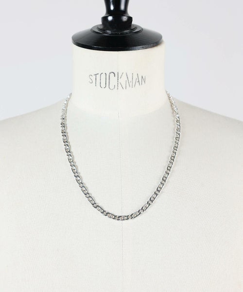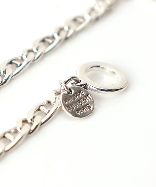 【デザイン】Philippe Audibert(フィリップ オーディベール)のネックレス。クールな輝きを放つシルバーカラーが魅力的なアイテム。角ばったフラットチェーンは存在感がありながらもスッキリと身に付けていただける逸品に。