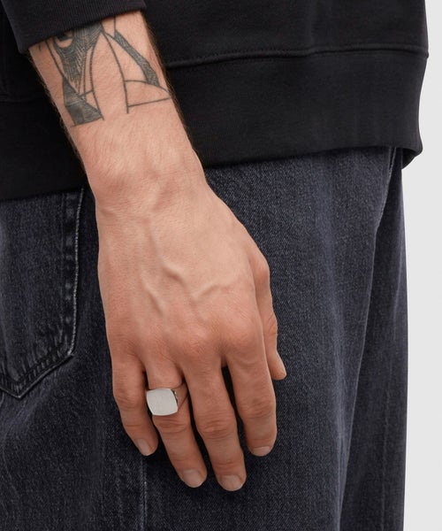 ■シグネットリングなど厚みのあるリングは、一般的にバンドリングなど細めのリングより大きいサイズを選ぶ必要がございます。