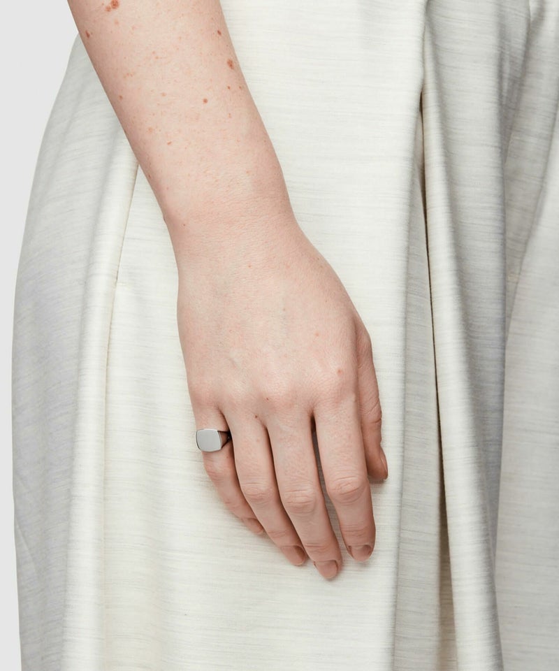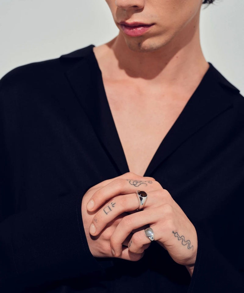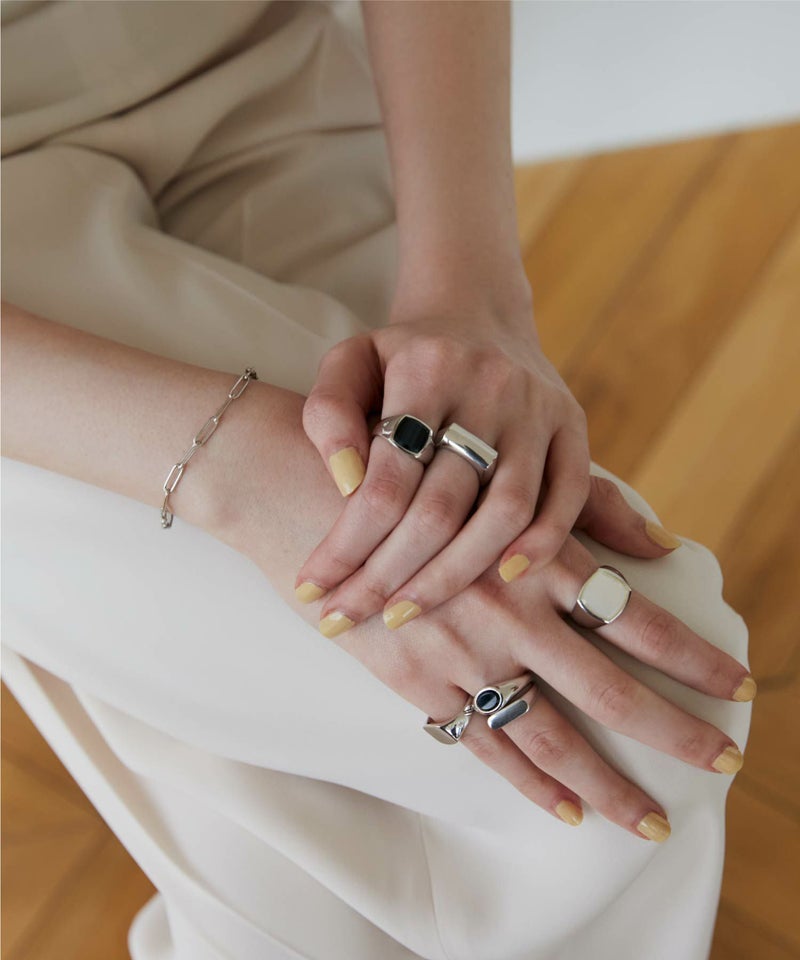 ■シグネットリングなど厚みのあるリングは、一般的にバンドリングなど細めのリングより大きいサイズを選ぶ必要がございます。