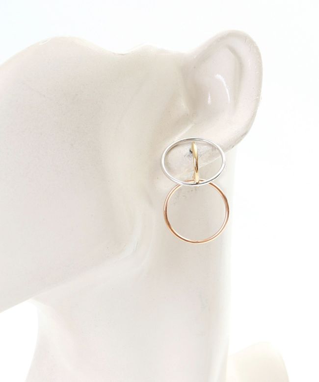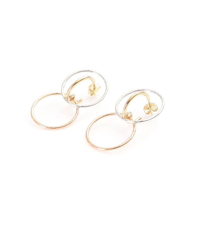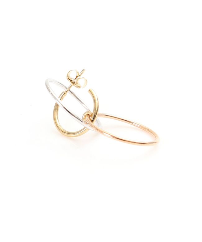 【デザイン】シルバー・イエローゴールド・ローズゴールドの調和が美しいピアス。華奢なラインを描きながらも、存在感のあるアイテムです。Charlotte Chesnaisらしいデザインで、顔周りを華やかに演出してくれます。付け方によって2WAYでお楽しみいただけます。高級感ある作りは特別な日の贈り物としてもおススメです。