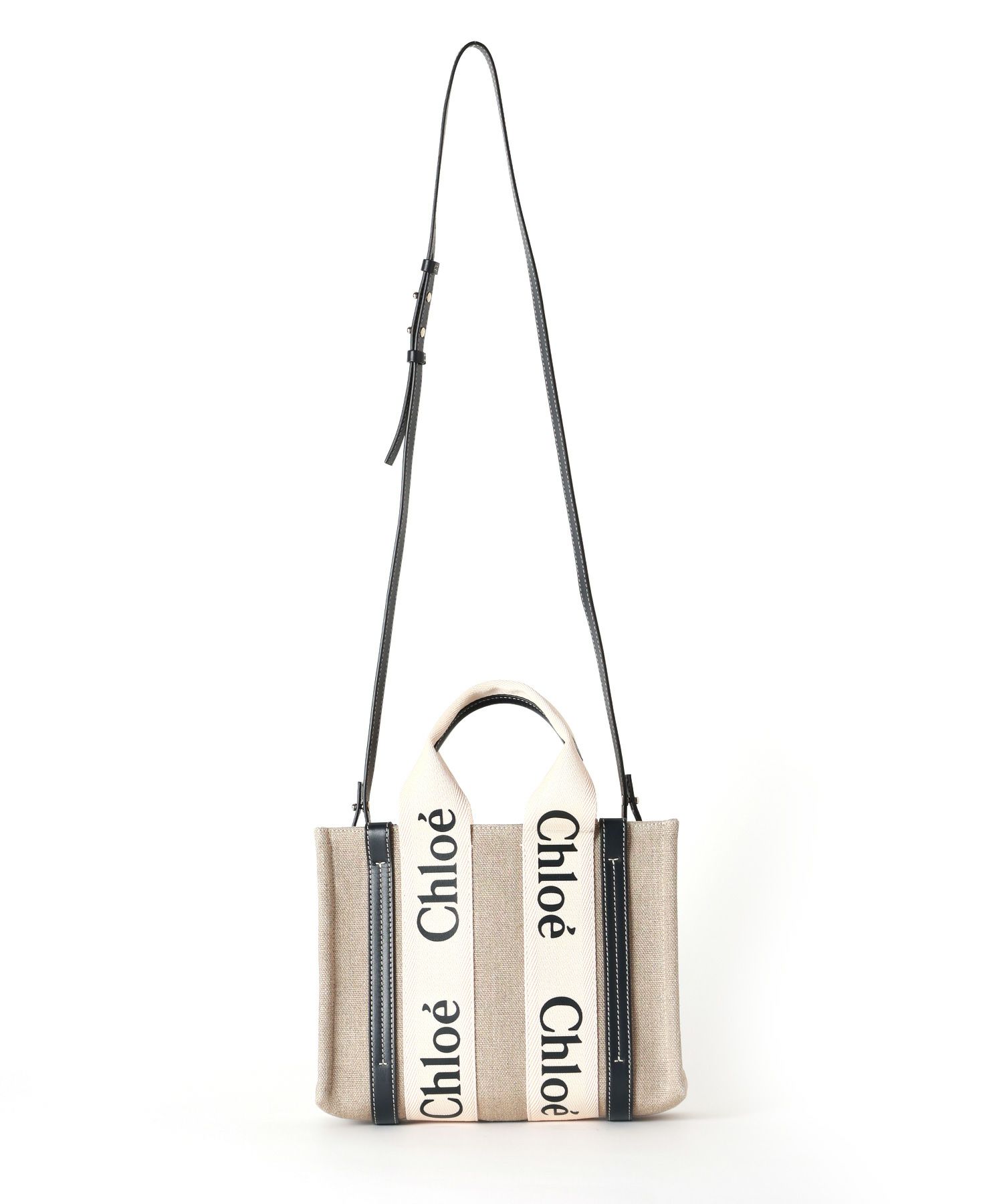 【デザイン】 Chloe(クロエ)のバッグ。 より環境に優しいリネンキャンバスに、シャイニーカーフスキンの飾り紐をあしらった“Woody”スモールトートバッグ。トップハンドルはもちろん、取り外し可能なロングストラップも付いた、ソフトなデイバッグです。ライニングのない広々とした内側のコンパートメントには、実用的なレザー製のフラットポケットがあしらわれ、上質な雰囲気を演出しています。腕掛け、ショルダー、クロスボディにできる多彩なスモールバッグです。 “Woody”について “Woody”ラインは、メゾンのアイコニックなミュールと合わせたシグネチャーなChlo?のロゴが特徴です。モダンでミニマルなシルエットを、ナノからラージまでのサイズで表現しています。
