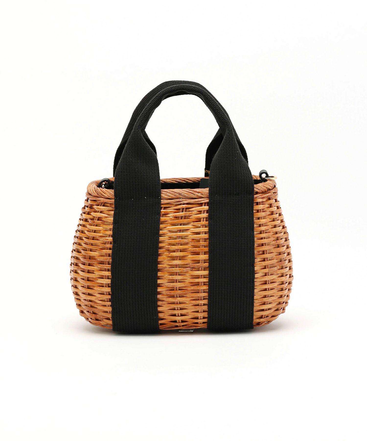 【デザイン】カラーテープとスカーフがアクセントになったラタンバッグ。ころんとしたフォルムがコーディネートに華を添えてくれます。取り外し可能なショルダーストラップ付きで、斜めがけも可能な2WAY仕様。コンパクトな見た目ながらもマチがしっかりあり、長財布など身の回りの物が収納できる普段使いに便利なサイズ。スカーフタイプのライニング付きで、荷物が見えないのも嬉しいポイント。