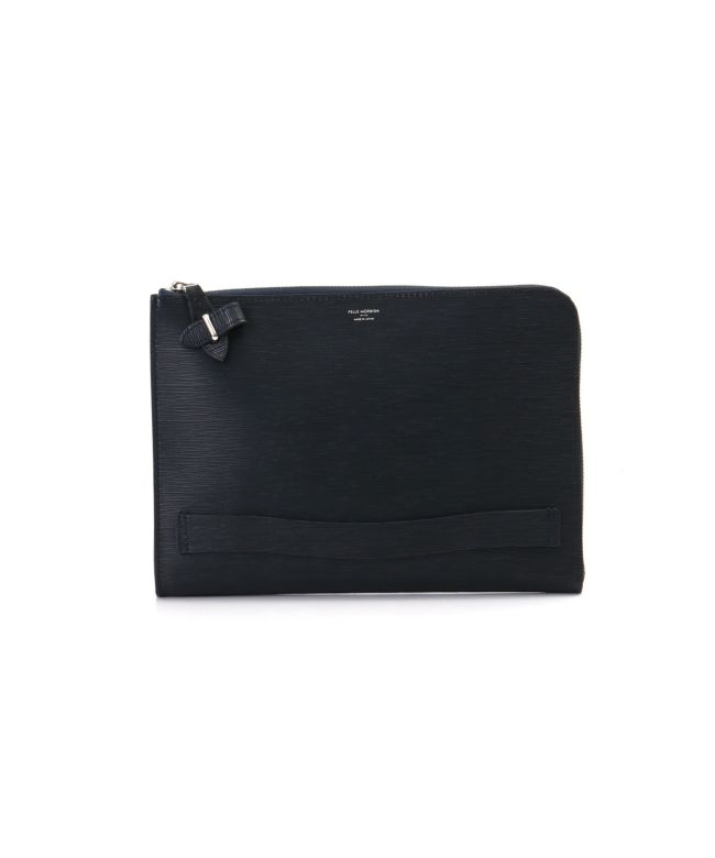 オフスタイルはもちろん、パーティーシーンでもクラッチバッグが活躍。このクラッチバッグはオリジナル型押しの革を贅沢に使用し、大人の男らしい仕上がりにしました。正面にはペッレ モルビダらしい曲線的なハンドルが付属し、手を通しても持ちやすく、機能性もしっかり。引き手を止める金具&ベルト使いがデザインのワンポイントになっています。
