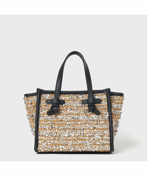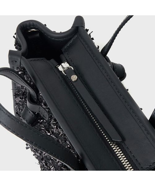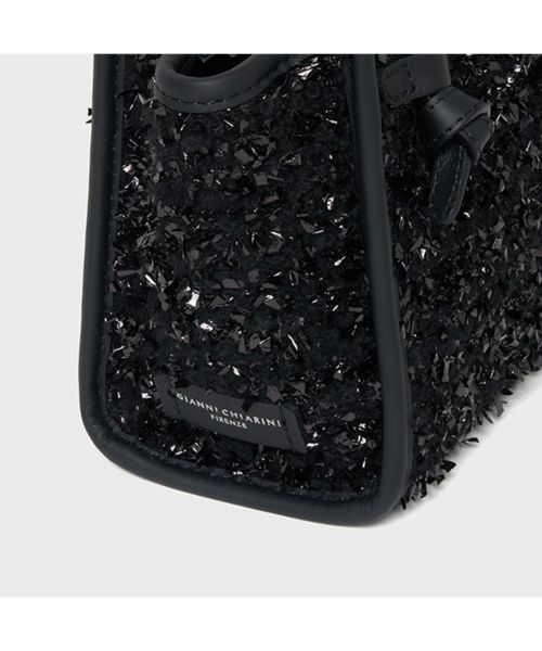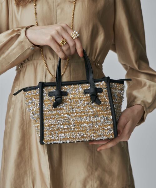 【デザイン】GIANNI CHIARINI(ジャンニ キアリーニ)のバッグ。ブランドのベストセラーアイテム"マルチェッラ"よりクロスボディバッグ、ハンドバッグとして使用できるミニサイズが登場。ブークレウールとルレックスが織り込まれたキラキラと輝くデザイン。アクセサリーのような華やかさが冬のデイリースタイルを引き立てます。トップジップがついた実用性とデザイン性を兼ね備えたアイテムです。取り外し可能なショルダーストラップ付。