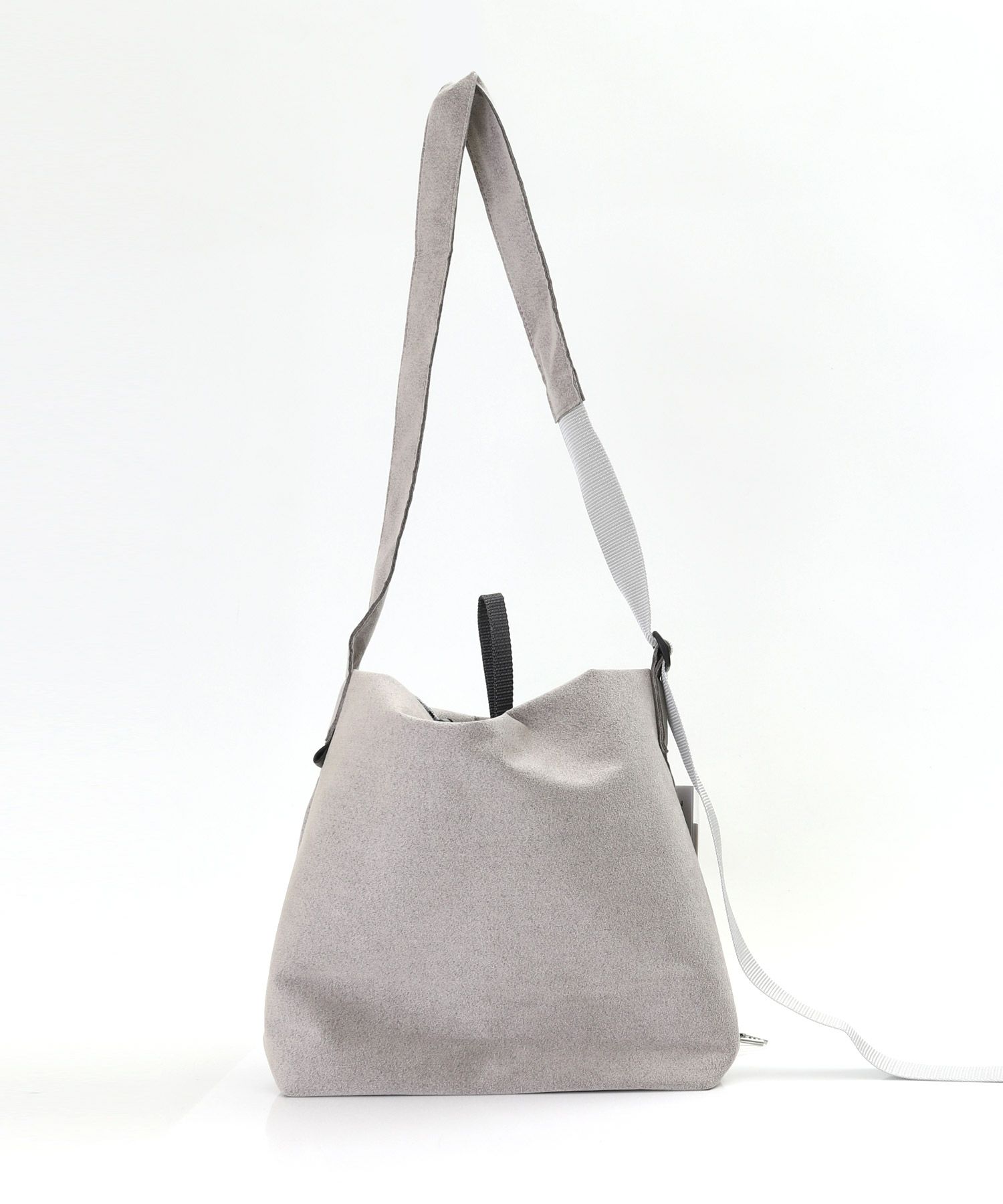 【デザイン】 ブランド定番のマイクロファイバースエード素材を使用した2wayショルダーバッグ。巾着のように開口部を紐で開閉でき。ショルダー部分は伸縮が可能なので斜めかけにしていただくこともできます。カジュアルながらも上品な雰囲気のあるアイテムです。