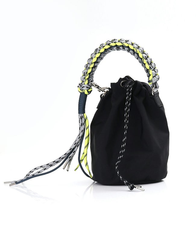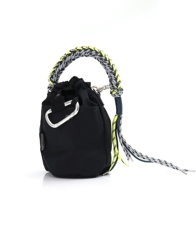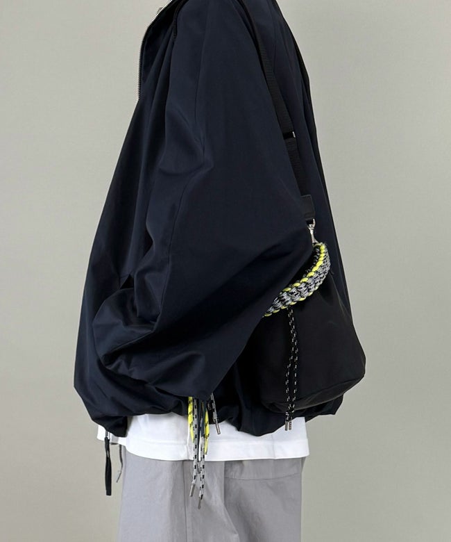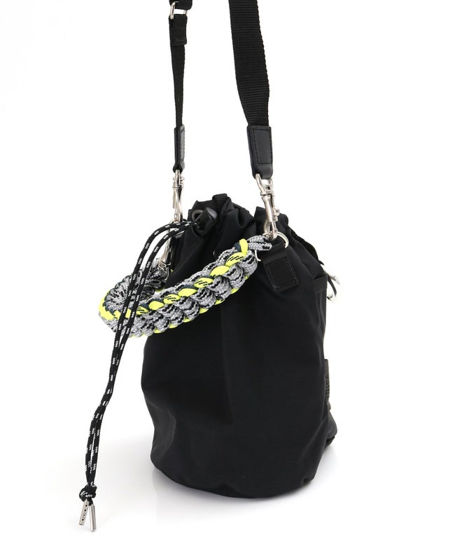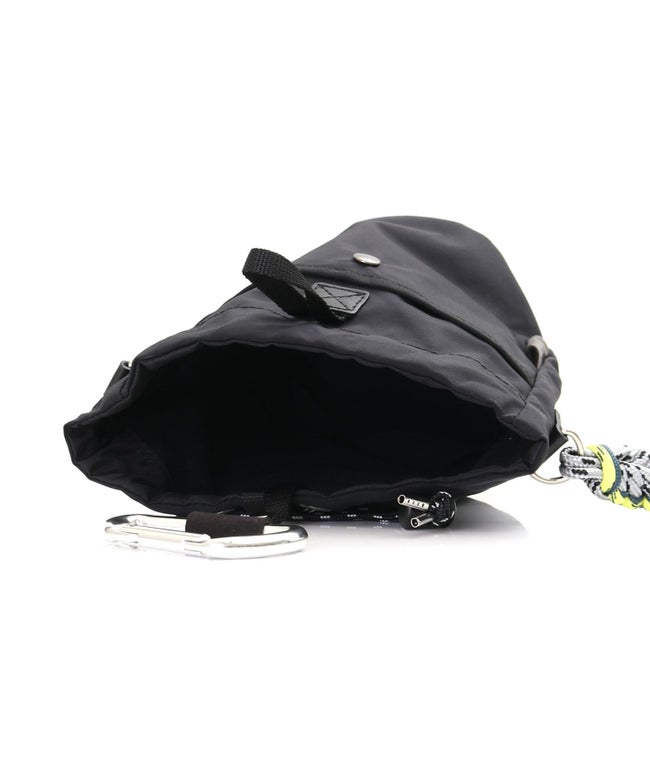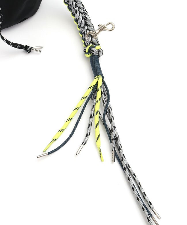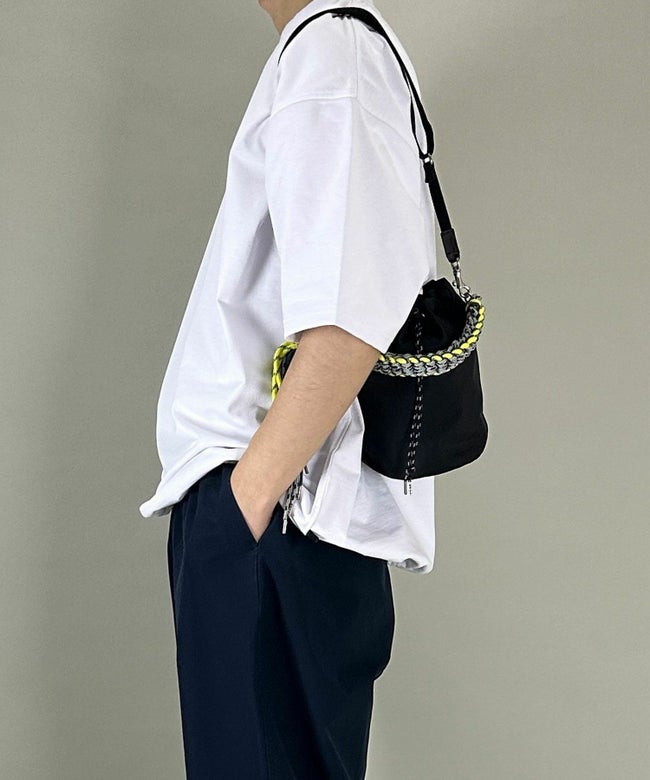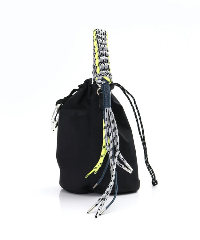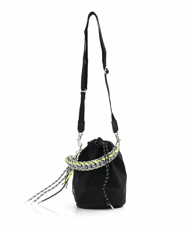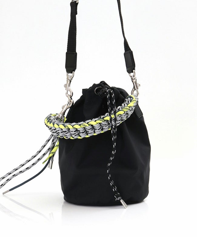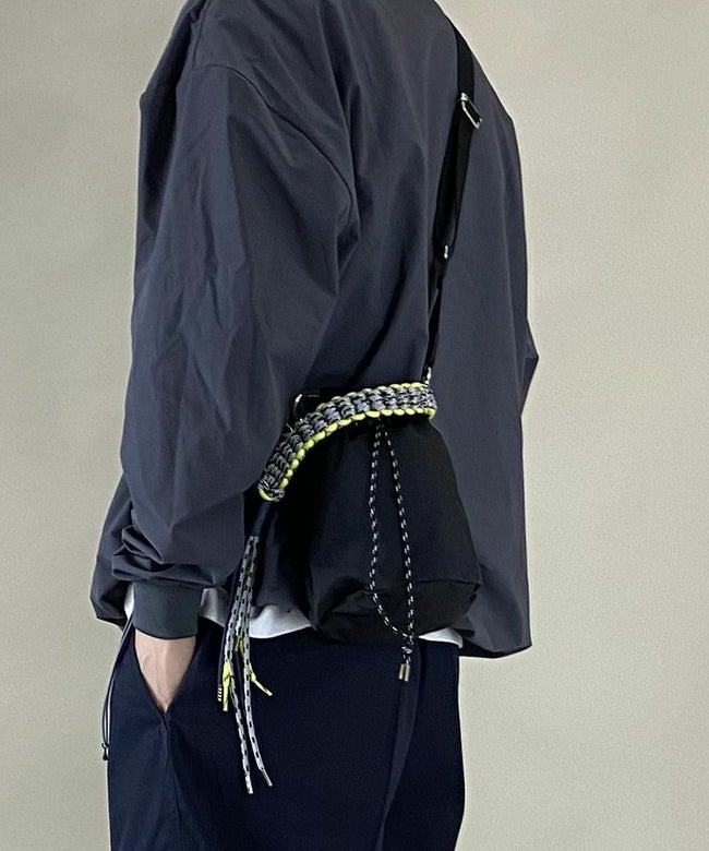 【デザイン】 スポーティーで色鮮やかなイントレコードが目を惹くzattu(ザッツ)のショルダーバッグ。開口部は巾着仕様になっております。コンパクトなサイズ感が魅力で、スタイリングのアクセント使いにもぴったりです。