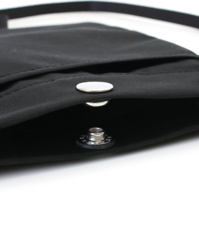【デザイン】 薄マチでアウターなどのインナーでの使用や バックパックなどを使用した際の別収納として便利なミニショルダーバッグ。 本体素材は撥水・防水性に優れたハリのある3レイヤーナイロンを採用。 内装にはスマートフォンなどの収納に便利なオープンポケット。 キーホルダーなどをかけることが出来るコードのループが付属しています。 背面には小分けに便利なオープンポケットがあります。 ショルダーテープはキメ細かいナイロンテープ、 ショルダー長さ調整部分は高密度ナイロンコードを使用し調整が容易に出来る仕様になっています。 フロントのホック、両サイドのリングがポイントになっています。