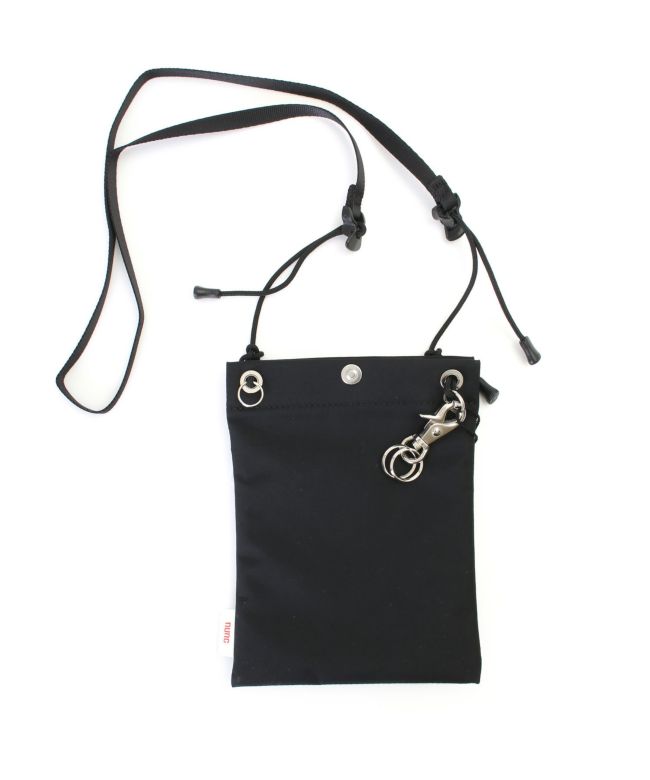 【デザイン】 薄マチでアウターなどのインナーでの使用や バックパックなどを使用した際の別収納として便利なミニショルダーバッグ。 本体素材は撥水・防水性に優れたハリのある3レイヤーナイロンを採用。 内装にはスマートフォンなどの収納に便利なオープンポケット。 キーホルダーなどをかけることが出来るコードのループが付属しています。 背面には小分けに便利なオープンポケットがあります。 ショルダーテープはキメ細かいナイロンテープ、 ショルダー長さ調整部分は高密度ナイロンコードを使用し調整が容易に出来る仕様になっています。 フロントのホック、両サイドのリングがポイントになっています。