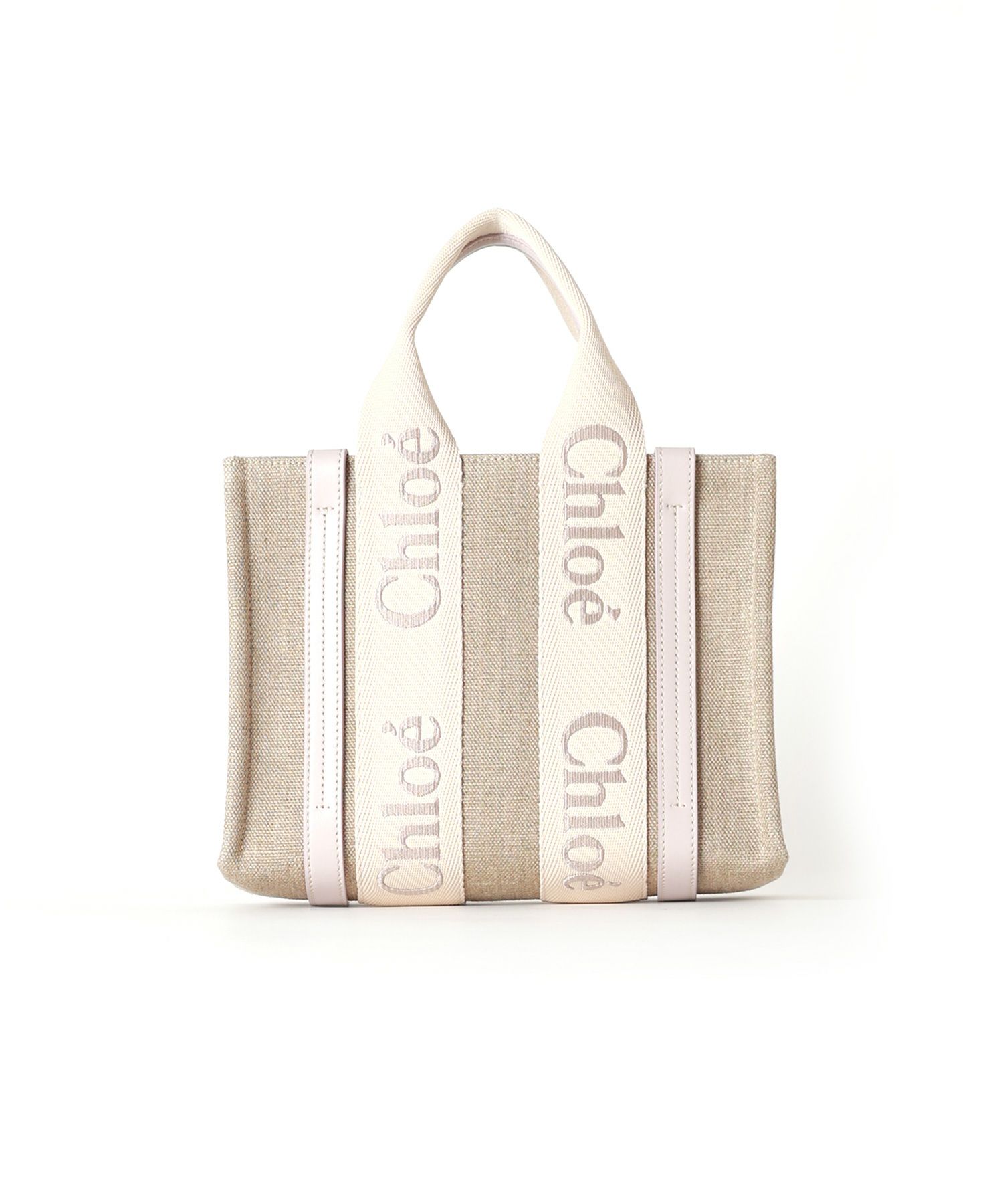 【Chloe(クロエ)】 リネン製WOODYスモールトートバッグ