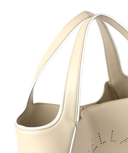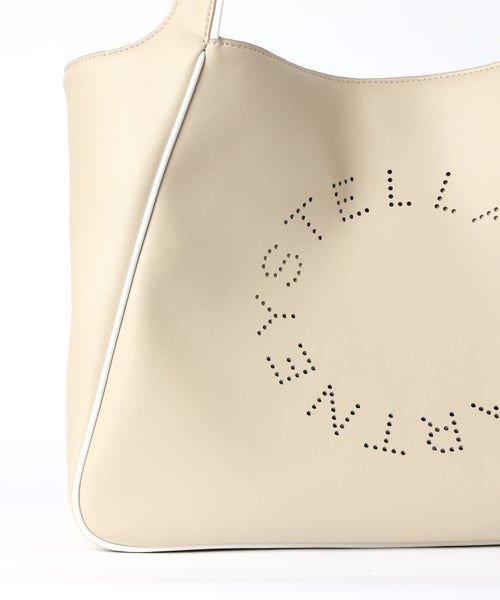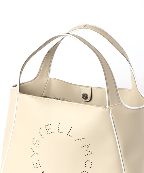 【デザイン】 STELLA McCARTNEY(ステラ・マッカートニー)のトートバッグ。大きめサイズで収納力に優れたアイテム。フロントにはサークル状にパンチングされたロゴがあしらわれ、シンプルな中にもブランドらしいアクセントをプラスしています。縁に施されたコントラストパイピングが全体を引き締め、洗練された印象に。軽やかな仕上がりで、デイリーからお出かけまで幅広く活躍します。