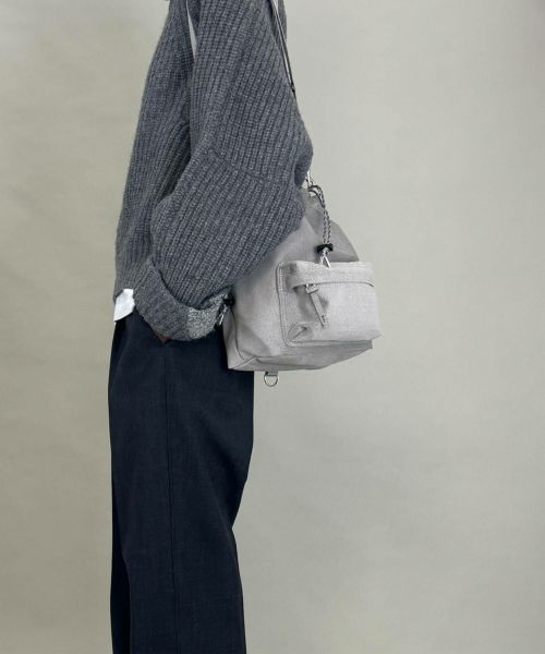 【デザイン】 ブランド定番のマイクロファイバースエード素材を使用したショルダーバッグ。サイドと上下にDカンがついており、ショルダーの位置を変えて、お持ち頂くことができます。口元は巾着のように紐で開閉が可能。フロントに配された大きなポケットが機能性とデザイン性をプラスしています。カジュアルながらも上品な雰囲気のあるアイテムです。