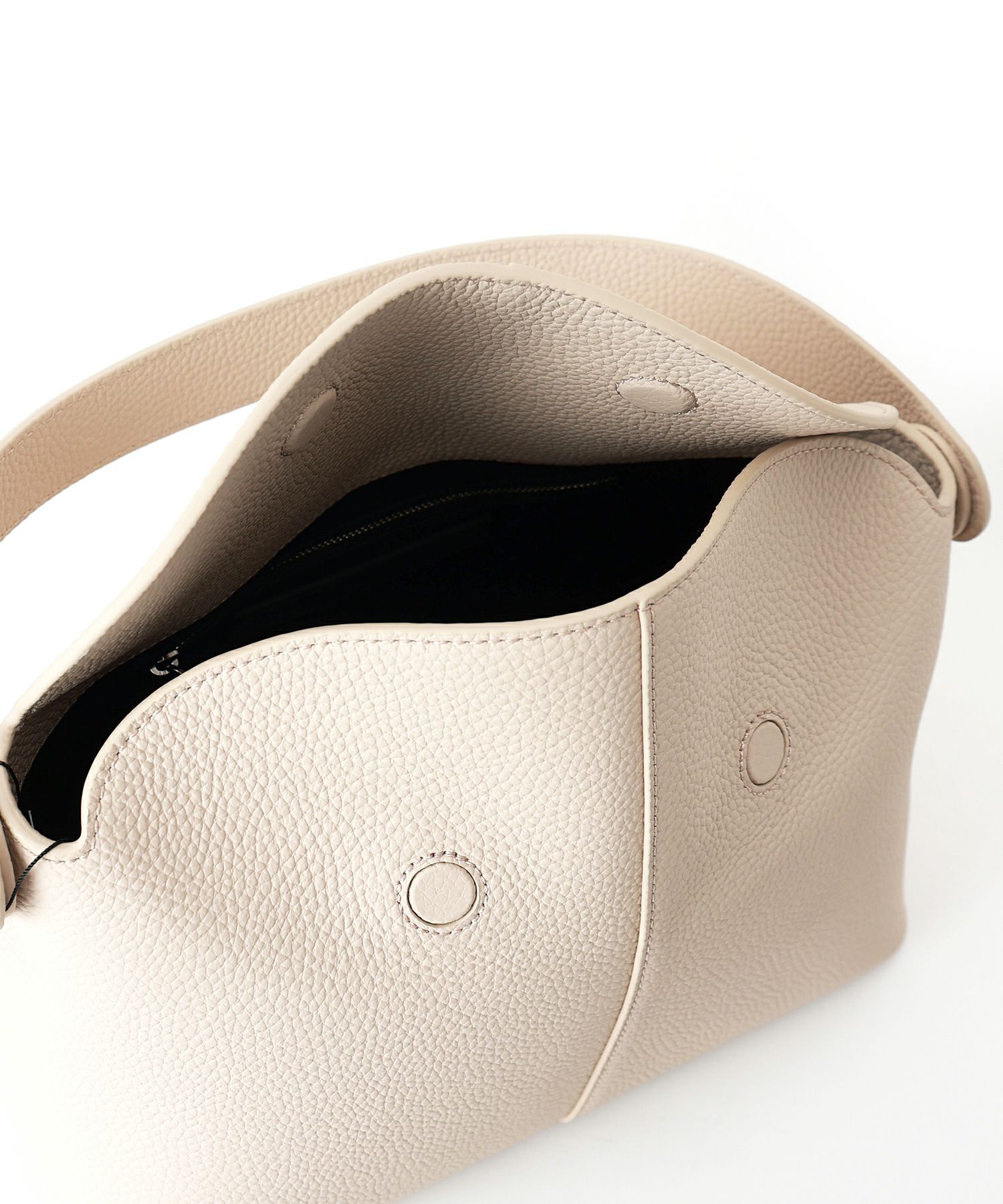 【デザイン】VASIC(ヴァジック)のバッグ。ふっくらとした立体的シルエットのNoa Mini(ノア ミニ)。幅太のハンドルは回転式で、持ち運びやすさもさることながら、ハンドルの主張がバッグ全体の完成された美しさを構成。ショルダーバッグとして使う際も、存在感を発揮します。バッグの開閉はマグネット式で、物の出し入れもスマートに。エレガントなバッグでありながら、シュリンクレザーのテクスチャーが垢抜けた印象を与えます。