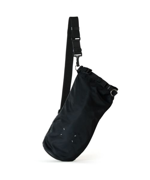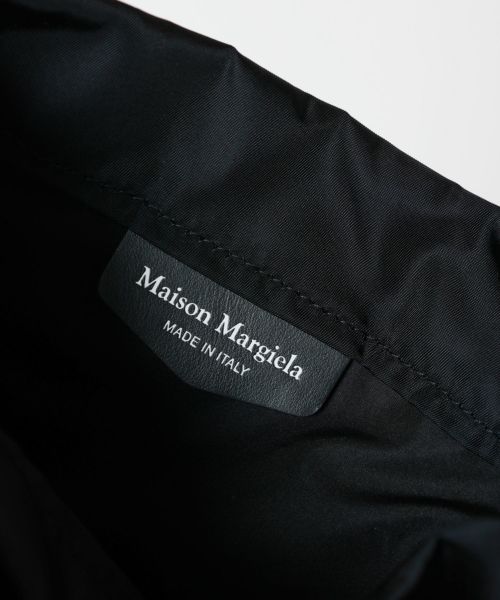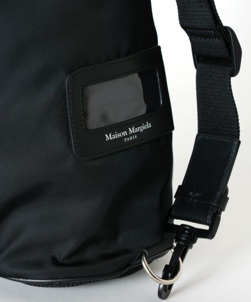 【デザイン】Maison Margiela(メゾンマルジェラ)のロールアップバッグ。 アウトドアウェアからインスパイアされたこのバッグは、ナイロン製で、機能性とデザイン性を兼ね備えたアイテムです。着脱・調節可能なストラップとバックルが付属しており、使用シーンに合わせて調整が可能。フロントにはロゴ入りの窓付きスロットがあり、メゾンマルジェラのナンバリング ロゴがアクセントとして効いています。バックにはメゾンマルジェラのシグネチャーである4ステッチが施され、その裏側にラベルがついているのもポイントです。