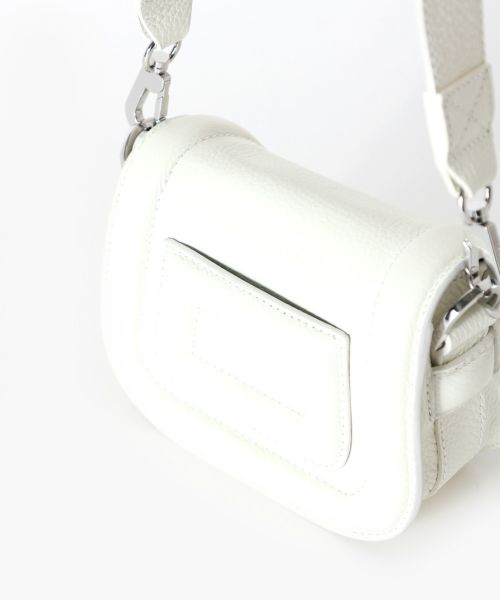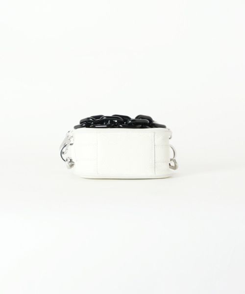 【デザイン】 PIERRE HARDY(ピエールアルディ)のバッグ。「アルファ ヴィル」は、エレガントで都会的なミニバッグです。クロスボディとチェーンをハンドル持ちにできる2つの仕様で、それぞれ取り外しが可能。ボリューミーなシルバーチェーンが全体を引き締めるアクセントに。スマホやミニウォレット、リップスティックを収納できるサイズ感で、日常の必需品を手軽に持ち運べます。内側にジップ付きポケットとオープンポケットがそれぞれ1つ、外側にオープンポケットが1つ備わっています。ラウンド型ミラーチャームも内蔵されています。