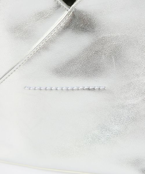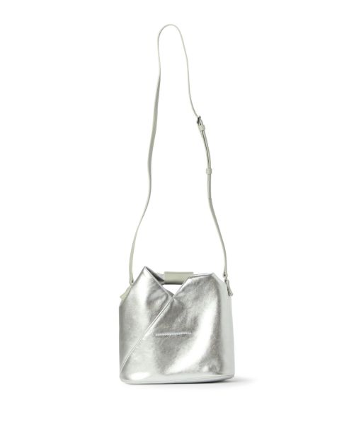 【デザイン】MM6 Maison Margiela(エムエムシックス メゾン マルジェラ)のバッグ。シンセティックレザーの「ジャパニーズ」クロスボディバッグです。2009年の秋冬コレクションのアイテムとして発表された「ジャパニーズ」バッグは、発表以来、MM6 Maison Margiela(エムエムシックス メゾン マルジェラ)を代表する象徴的なアクセサリーとなっています。日本の伝統的な折り紙にインスパイアされた三角形のフォルムが特徴です。バッグの形を変えることができるスナップボタンも折り紙にインスパイアされた要素で、メゾンの脱構築的なデザインコードを反映しています。タイムレスなアクセサリーであり続けるため、「ジャパニーズ」バッグは毎シーズン、サイズや素材を変えアップデートされています。