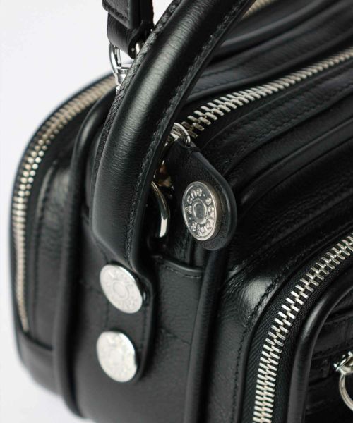 【デザイン】 Acne Studios(アクネストゥディオズ)のバッグ。光沢感のあるスモールグレインレザーをベースに、マルチポケットとジップ付きコンパートメントで整理整頓しやすいデザインが魅力のクロスボディバッグです。フロントに配されたシルバーでエンボス加工された「Acne Studios 1996」ロゴや、デニムスタイルのボタンロゴ、ブランドロゴ入りのキーチャームがアクセントとなり、ミニマルながら確かな存在感を発揮します。ドロップハンドルと調節可能なクロスボディストラップにより、多彩なシーンで活躍する多用途なデザインです。