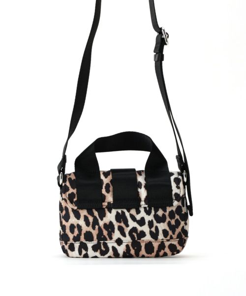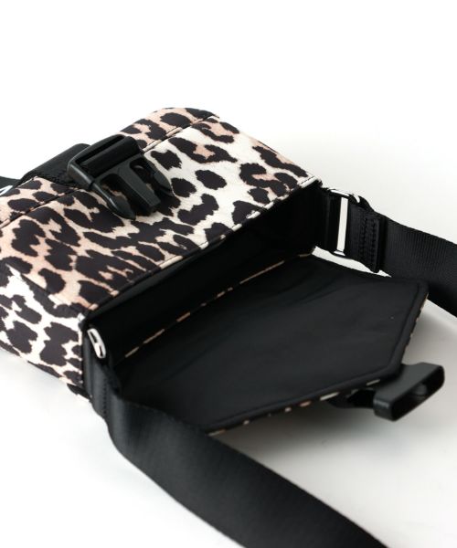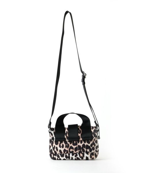 【デザイン】 GANNI(ガニー)のミニショルダーバッグ。バックル部分にはGANNI(ガニー)のブランドマークが入施されたアイコニックなアイテム。ナイロン素材でアクティブなシーンにもご活躍頂けるバックです。ショルダーストラップ付で、クロスボディにも対応可能。コンパクトながら必要最低限のものはしっかり収納してくれるので、普段使いにもピッタリのバックです。印象的なレオパード柄は、スタイリングのアクセントにもなってくれます。