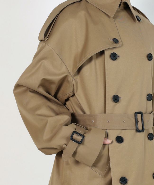 【スタッフ ささき】 身長 : 161cm/体型:ナチュラル /年齢:20代前半 /普段サイズ : M/着用サイズ:1 素材感:ハリのあるコットン×ポリエステル素材でシワになりにくいのが特徴です!高密度サージ織りの生地に撥水加工を施しています。 サイズ感 : 既存のTRENCH COAT/BIG FITのサイズ感をリサイズしたモデル。ざっくりとしたオーバーなサイズ感がこなれた印象に!アームが大きめの作りになっているため、厚手のニットや脇がゆったりしたトップスとも相性抜群です◎ おすすめポイント:取り外しのできるライナー付きで長い期間着ていただくことができます。どのアングルから見ても、形がキレイな定番のトレンチコートは一生もの!持っておいて損はなしです!