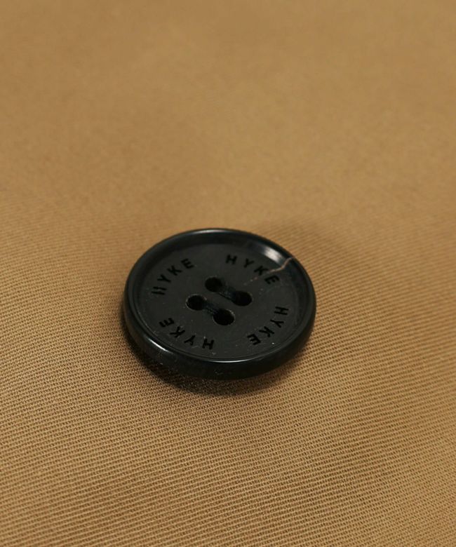【デザイン】HYKE(ハイク)のトレンチコート。ミリタリーのオフィサー用トレンチコートからインスピレーションを得てデザインされたHYKE(ハイク)の名品トレンチコート ビッグフィットです。 既存のTRENCH COAT/BIG FITのサイズ感をリサイズしたモデルに。ビッグシルエットに付属のベルトでウエストマークをすればメリハリのある印象に。取り外しのできるライナー付きで3シーズン活躍してくれます。縫製ミシンの目も細番手で運針の間隔も小さくすることで美しいステッチに仕上がっております。ボタンはHYKEのブランド刻印入りです。
