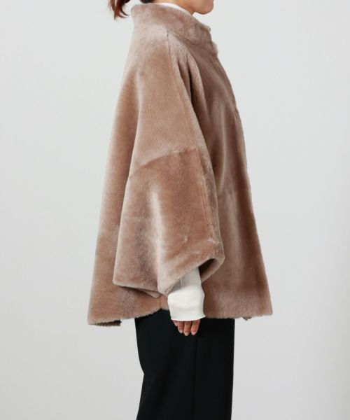 【デザイン】Lou Andrea(ルーアンドレア)のコート。リバーシブル仕様で、コーディネートや気分に合わせて2通りの着こなしが楽しめる贅沢な一着です。 ポンチョのようなゆったりとしたフォルムに、袖を備えることで風を通しにくく、実用性を高めたデザイン。ドルマンスリーブが生み出す立体的なシルエットは、動くたびに美しいドレープを描き、エレガントな印象に。ハイネック仕様で首元までしっかり包み込み、防寒性も抜群。両サイドにはポケットを配置し、デイリーユースにも嬉しい機能性を備えています。