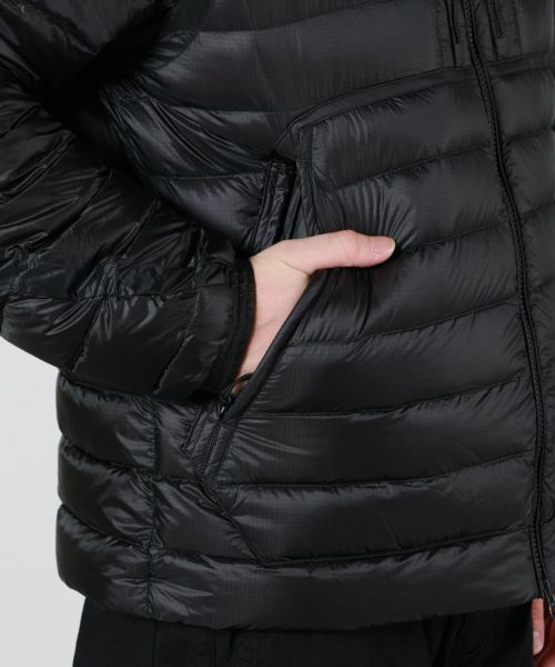 【素材】 微光沢のある7デニールの透けないリップストップナイロンをボディに採用。中わたはダウンとフェザーを使用しています。