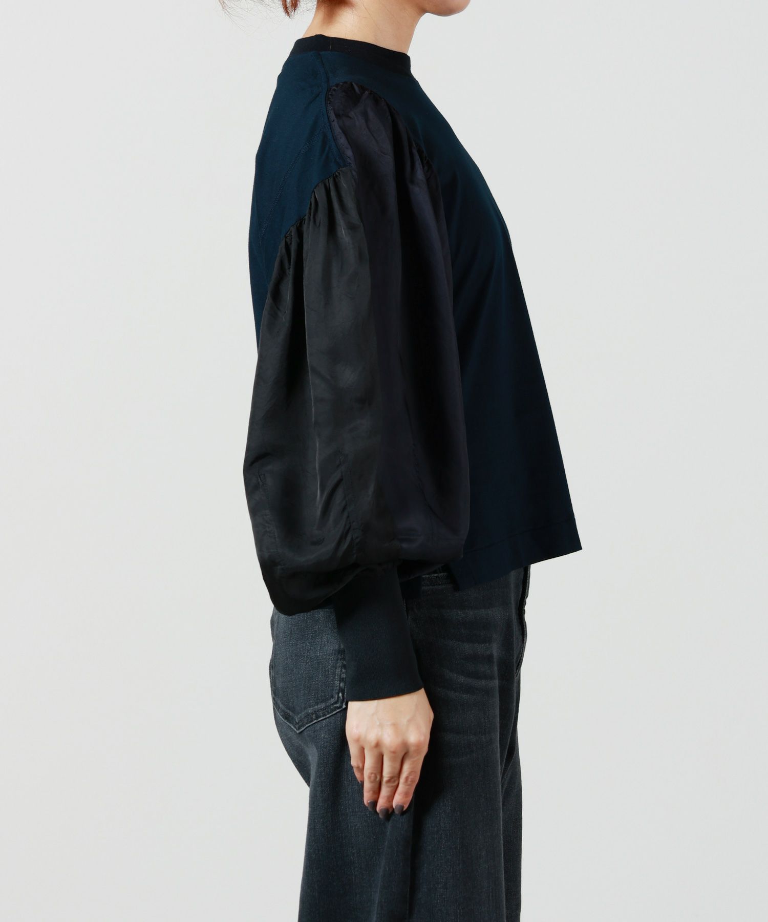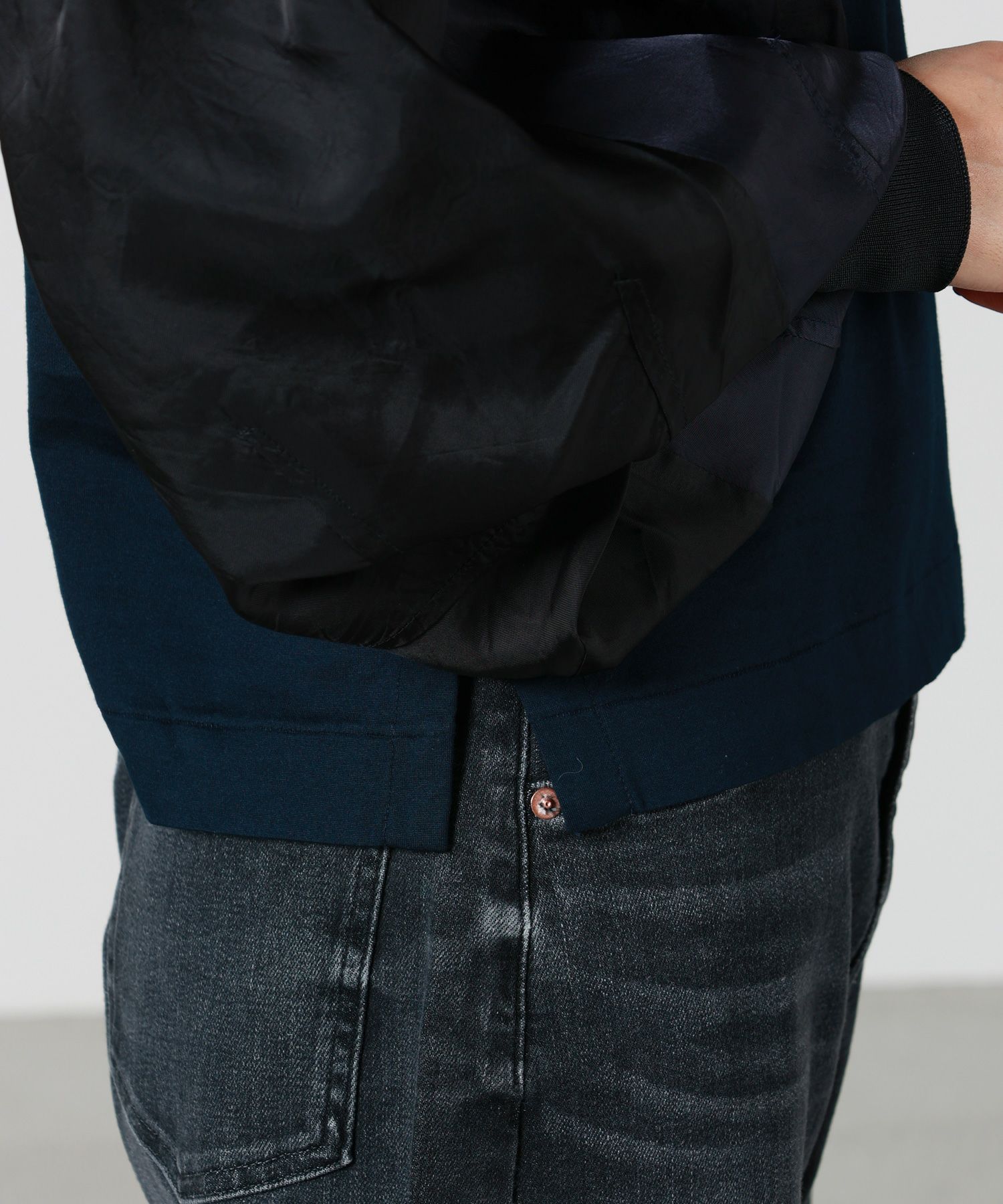 素材 (本体)綿100% (別布)キュプラ100% (袖口リブ)ポリエステル89%、ナイロン10%、ポリウレタン1%