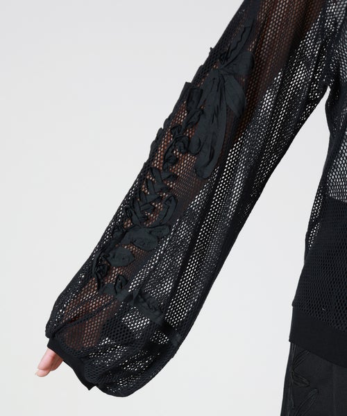 【LOKITHO(ロキト)】 CORD EMBROIDERY MESH TOP
