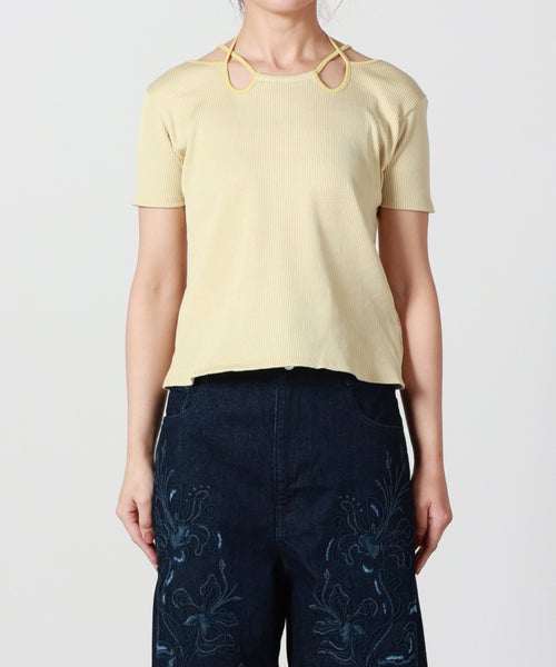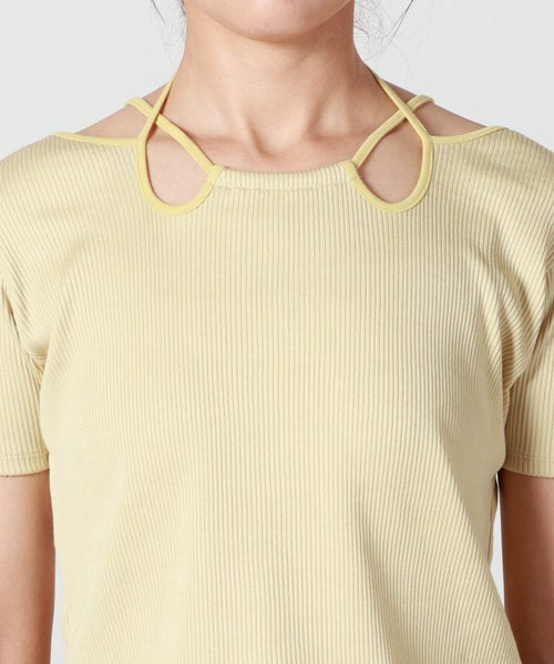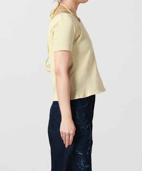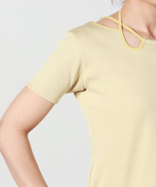 【デザイン】 MURRAL(ミューラル)のトップス。ブランドの定番として人気を誇るIvyシリーズより、ホルターネックデザインが印象的なハーフスリーブトップスです。首元のバインダーは後ろで結んだり、チョーカーのように巻き付けたりとアレンジが可能で、スタイリングにさりげない変化を加えられるのが魅力。コンパクトで程よくフィットするシルエットが上半身をすっきりと見せ、女性らしいラインを引き立てます。シンプルながらもディテールにこだわりが光り、デイリーコーデにも華やかさをプラス。幅広いスタイリングに馴染みながら、着こなしに個性を添える一着です。