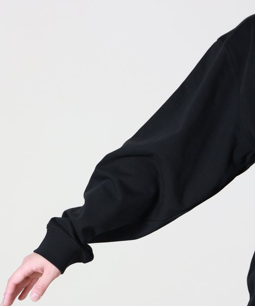 【素材】 コットン100%のスウェット生地を使用し、柔らかく自然な肌触りが魅力です。程よい厚みとしなやかさを兼ね備えており、手に取った際には安心感のある質感、着用時にはストレスのない快適な着心地を実現。見た目はマットで落ち着いた印象に仕上がっており、カジュアルさの中にも上品さを感じさせます。適度な伸縮性があるため動きやすく、日常使いにも適した一着です。